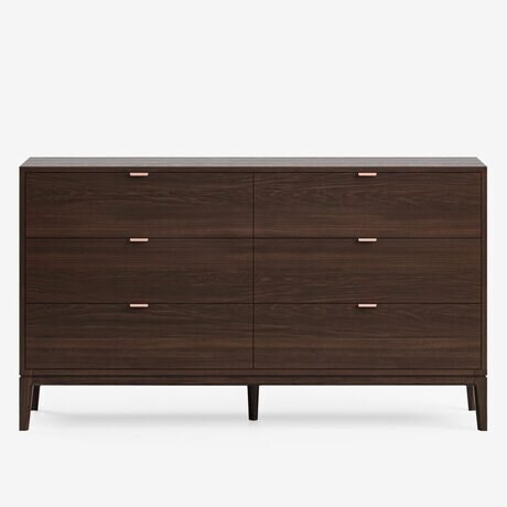 На фото комод представлен: тонировка - Дуб тёмный, ручки - Р6.