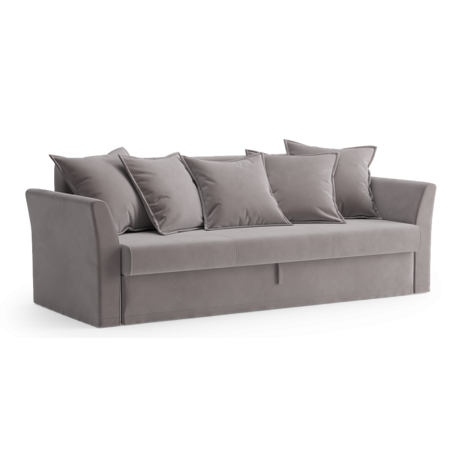 Диван-кровать в сером велюре универсален и подойдет как для семейных пар с детьми, так и для тех, кто часто принимает гостей. Мягкие подушки спинки обеспечивают комфортную посадку в любом положении, а высота сиденья 41-45 см оптимальна для людей любого роста.Технические характеристики с пользой: