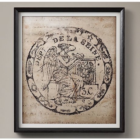 Точная репродукция оттисков печатей с итальянских и французских официальных документов - от церковных регистрационных записей и завещаний до свидетельств о собственности и правительственной переписки. Репродукции из серии 18TH C. EUROPEAN DOCUMENT SEALS прекрасно выглядят и в качестве одиночного декора, и в группе.