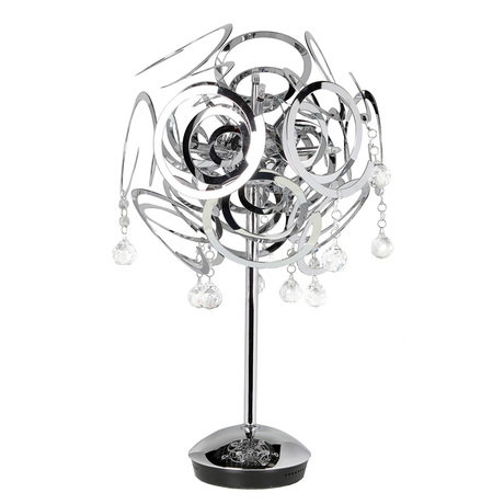 Настольная лампа из коллекции Elica на хромированной арматуре. Плафон состоит из множества металлических спиралей. Декор: прозрачные хрустальные кулоны.