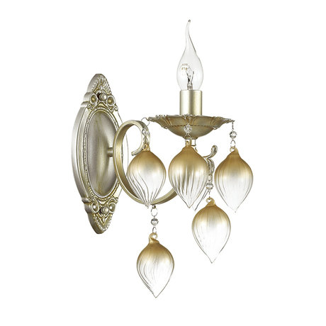 Бренд: Odeon Light; Коллекция: Zaklina; Количество ламп: 1; Мощность лампы, W: 40; Общая мощность, W: 40; Площадь освещения, м2: 2.2; Тип цоколя: E14; Тип лампочки (основной): Накаливания; Напряжение, V: 220; Степень защиты, IP: 20; Виды материалов: Стеклянные; Материал арматуры: Металл; Цвет: Золотой; Цвет арматуры: Золото; Место установки: На стену.